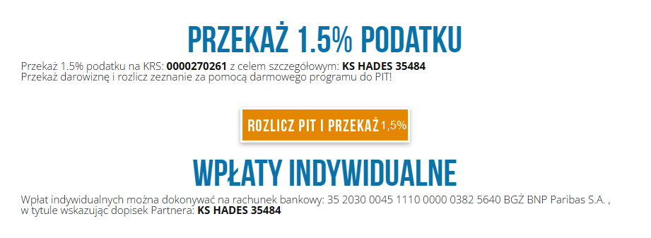 Przekaż 1,5 % podatku na KS Hades